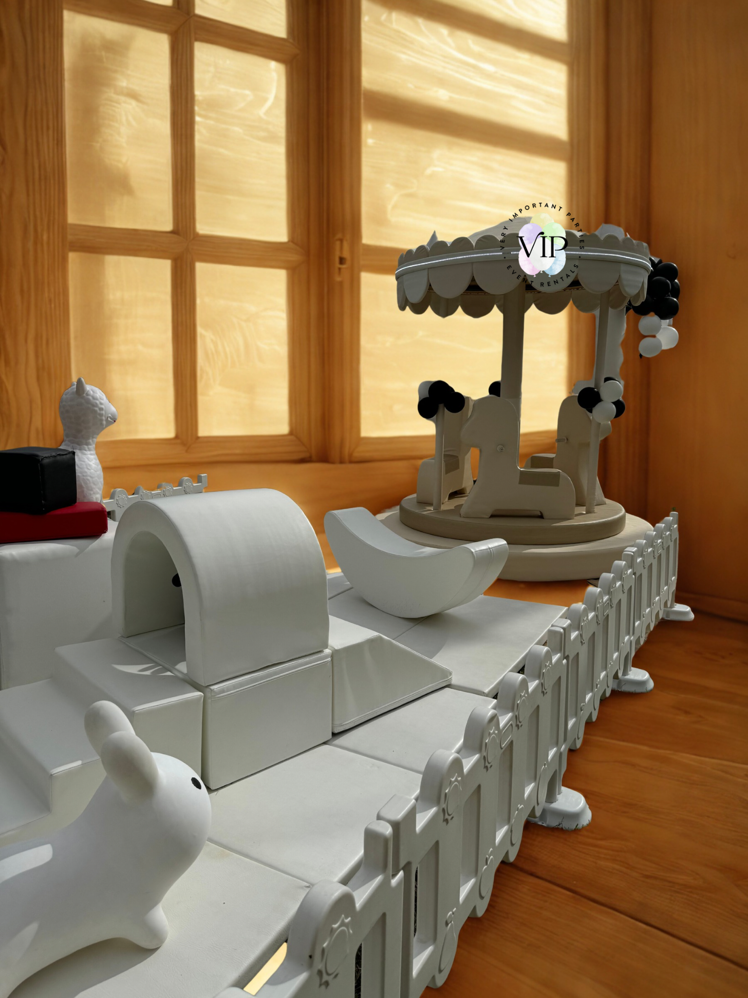 Imagine a magical carousel 12ft /6FT Wide, adorned with captivating LED Lights that transport you to a world of wonder and delight. Our unique soft play carousel is not just a product; it’s an immersive experience that sparks joy and creates unforgettable memories.
